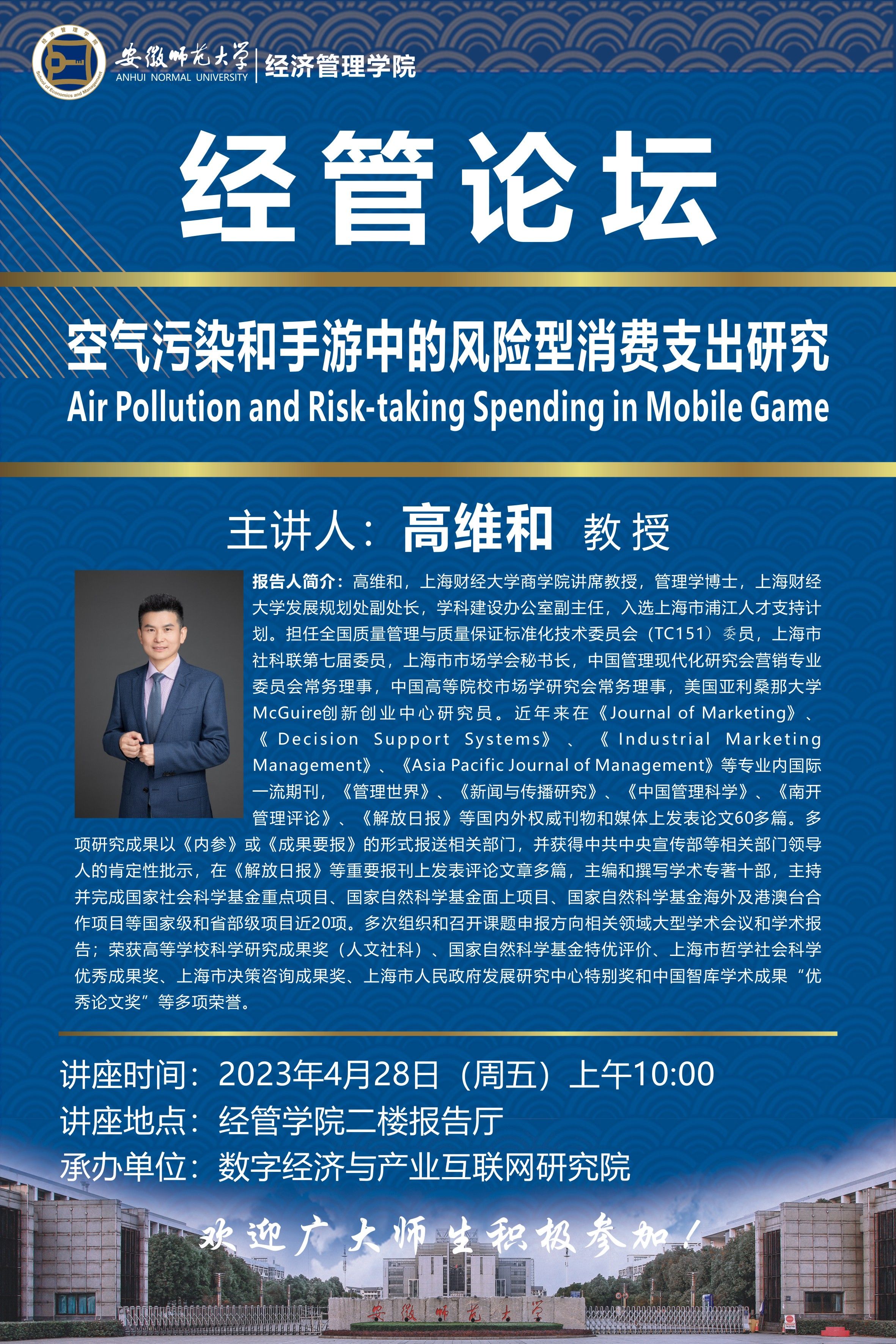 【学术讲座预告】高维和:空气污染和手游中的风险型消费支出研究