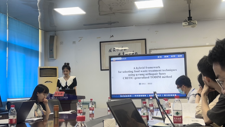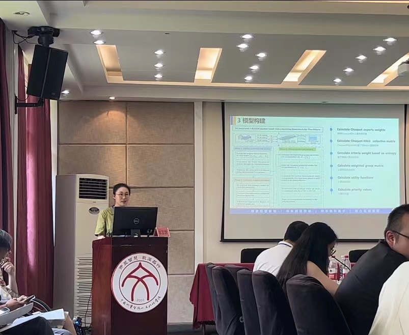 经过汪伟忠和韩笑两位老师的指导,研究生曹毓铄和王怡在会前全文投稿并在分论坛上进行了个人汇报,获得了与会专家学者的好评。在分论坛《DEA评价理论与方法研究》上,曹毓铄的汇报主题为《A hybrid framework for selecting food waste treatment techniques using q-rung orthopair fuzzy CRITIC-generalized TODIM method》,是用于粮食废弃物处理技术优选方案的一种混合决策框架,符合我国实施乡村振兴、保障粮食安全的发展战略,对提高粮食废弃物处理技术的匹配度有重要的技术支撑,对提升粮食废弃物有现实指导。在分论坛《评价理论与方法探索》上,王怡的汇报主题为《An integrated interval-valued spherical fuzzy CRADIS method for prioritizing risk in Fine-Kinney with Choquet integral》。该论文是基于Fine-Kinney模型下,综合区间球面模糊集,运用Choquet积分计算风险间的相互影响关系,从而用CRADIS排序方法计算出合理的优先级过程。
