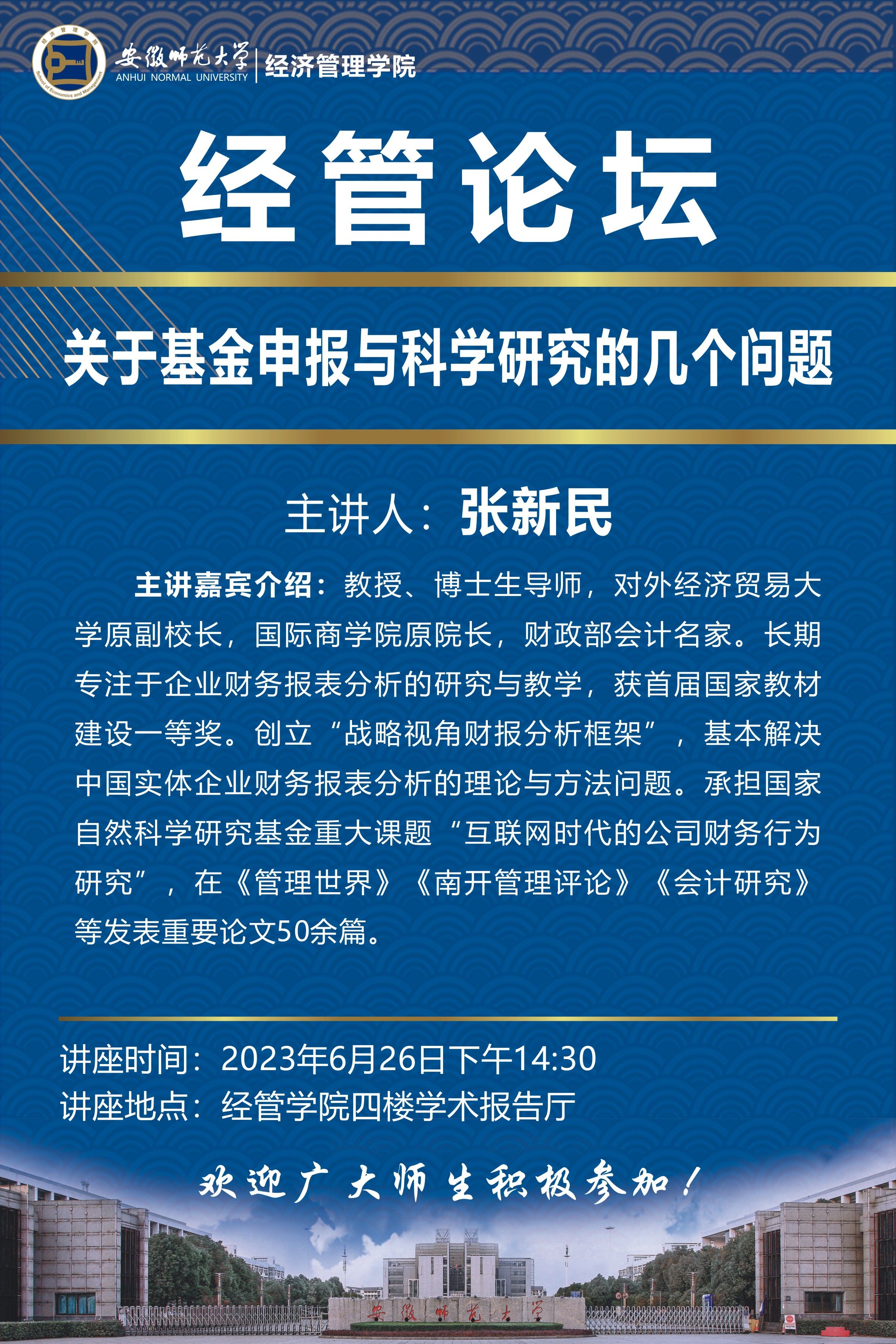 【学术讲座预告】张新民:关于基金申报与科学研究的几个问题