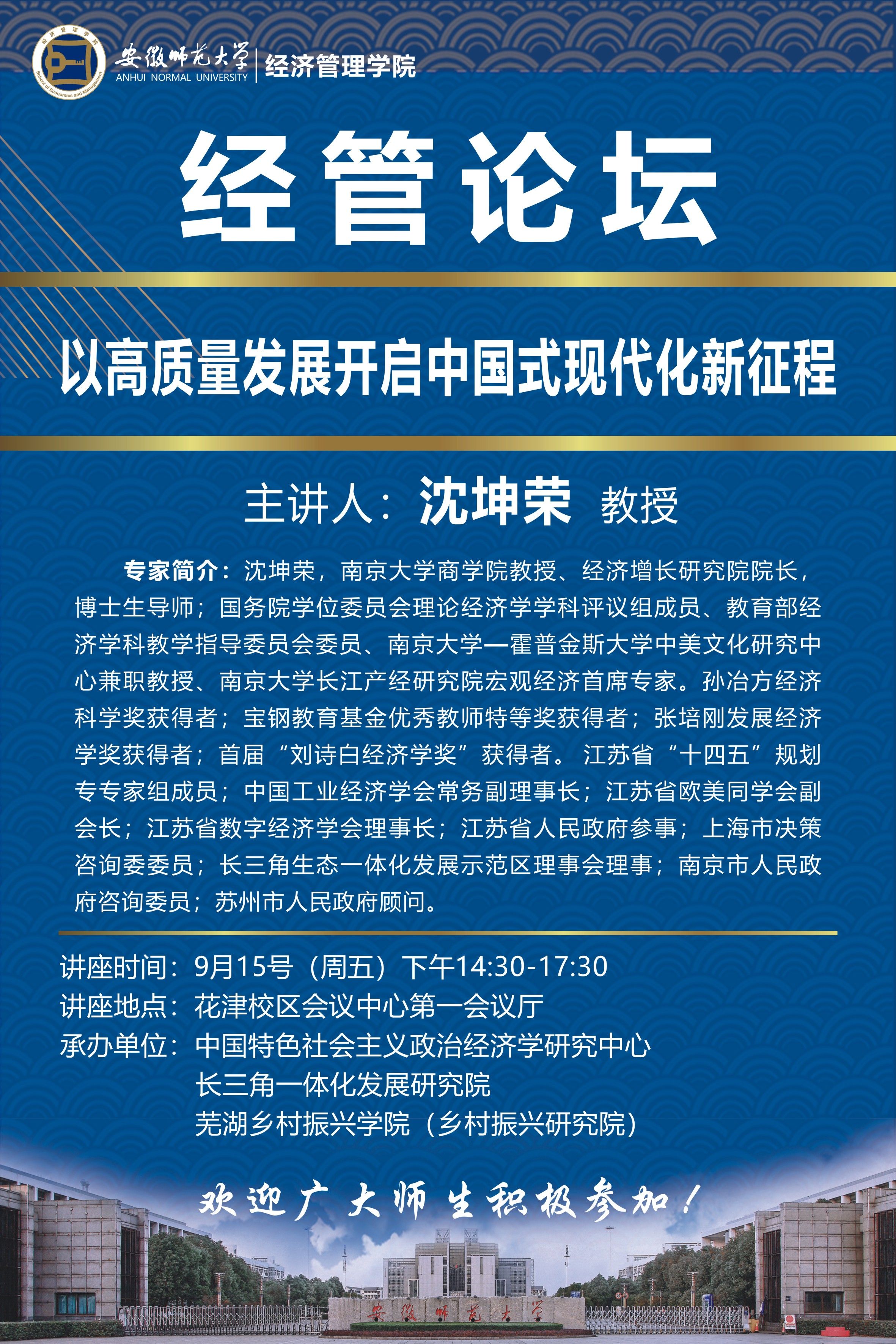 【学术讲座预告】沈坤荣:以高质量发展开启中国式现代化新征程