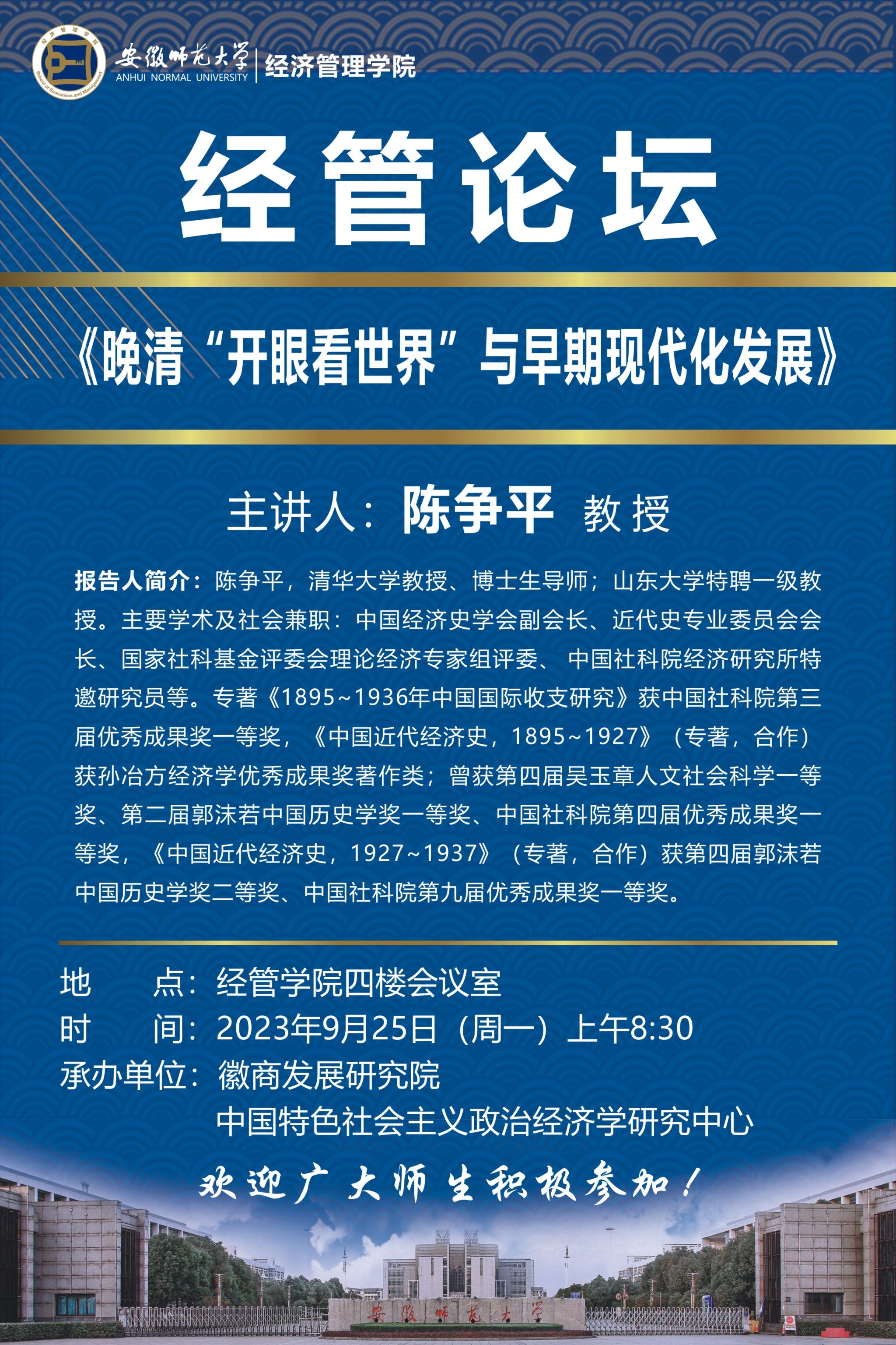 【学术讲座预告】陈争平:晚清“开眼看世界”与早期现代化发展