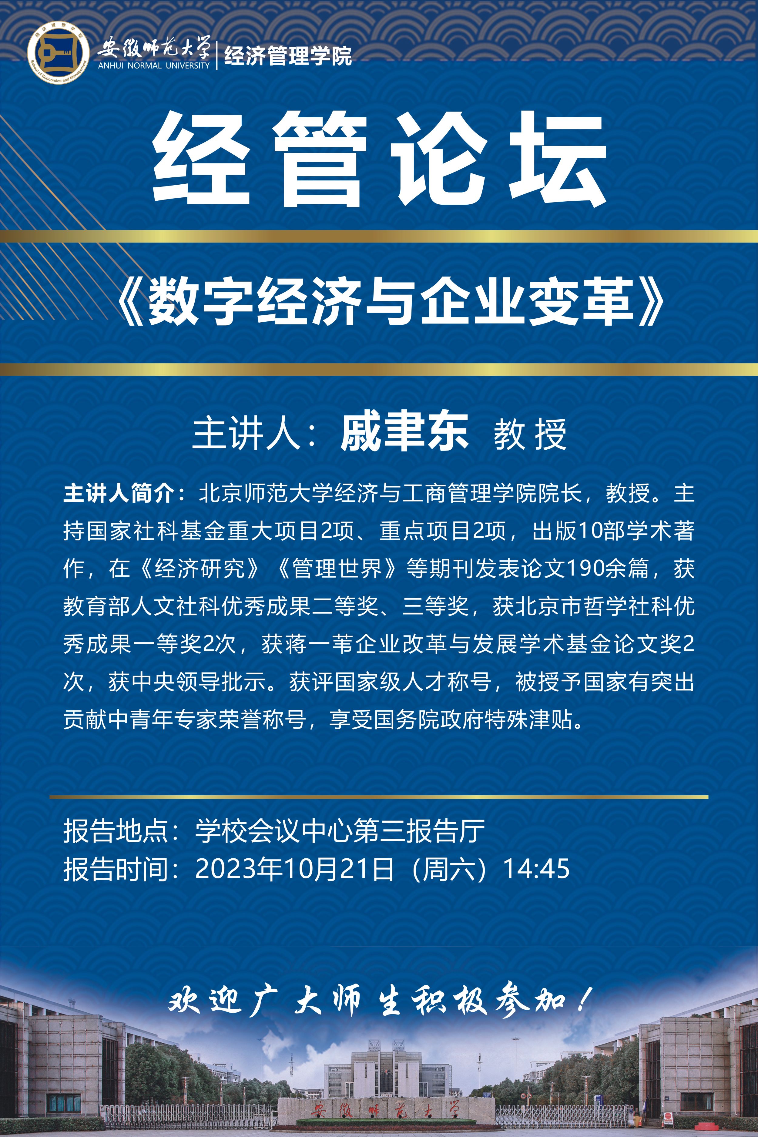 【学术讲座预告】北京师范大学戚聿东:数字经济与企业变革