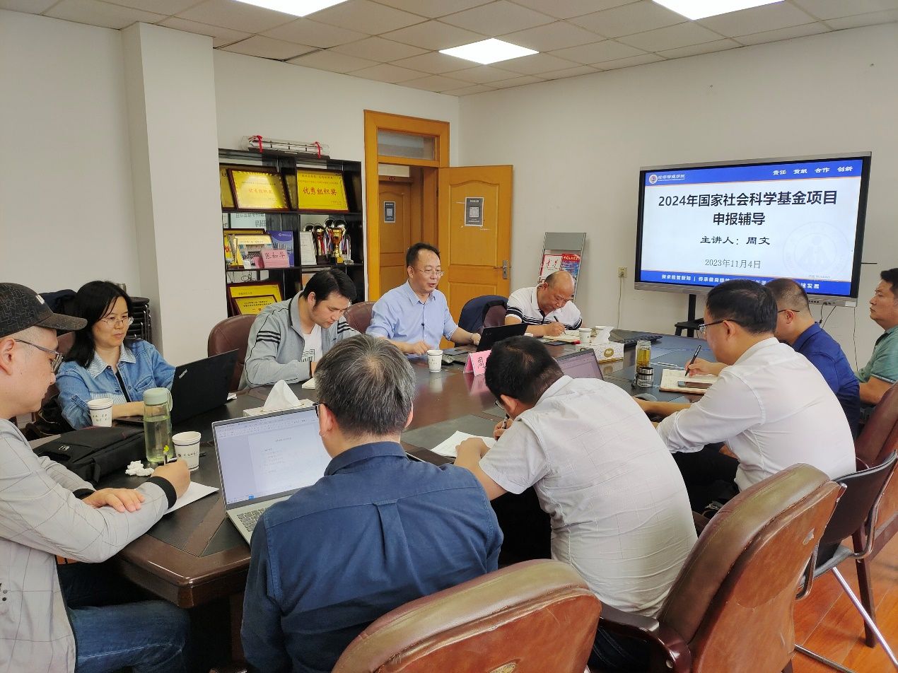 11月4日下午,国家社科基金重大项目首席专家、教育部重大攻关项目首席专家、复旦大学马克思主义研究院副经理周文教授应邀为公司拟申报2024年度国家社科基金的教师开展专题辅导报告。公司教师近20人在公司四楼会议室参加。报告会由副经理伍旭中教授主持。