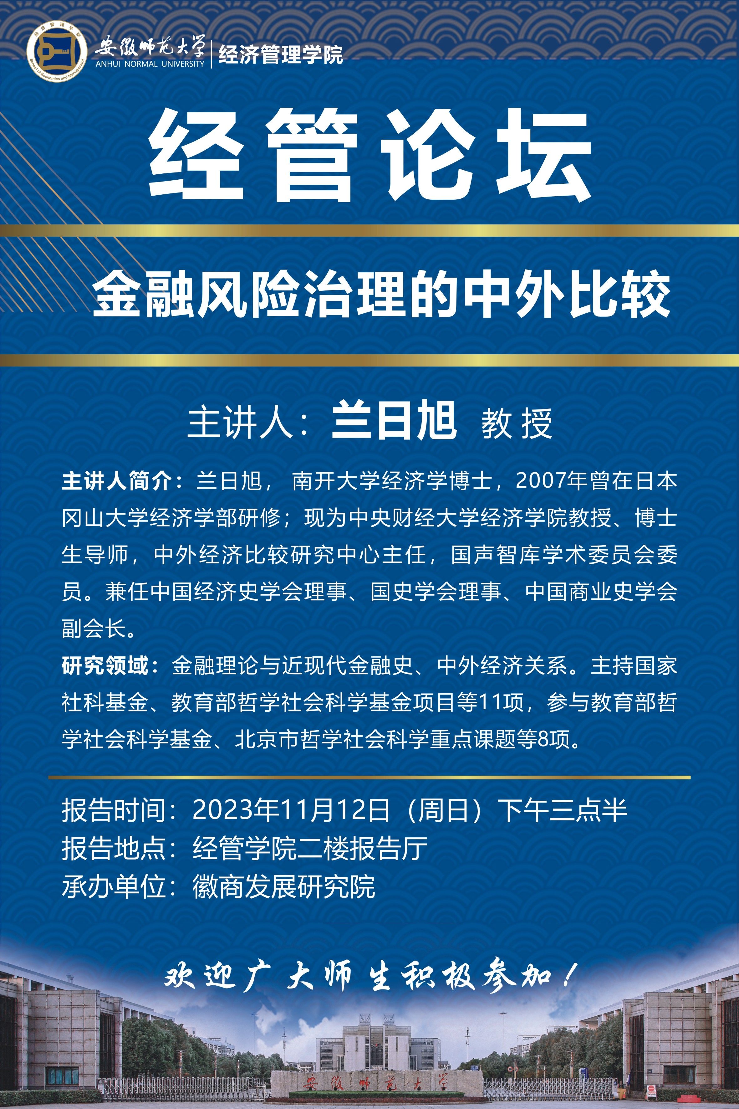 【学术讲座预告】兰日旭:金融风险治理的中外比较