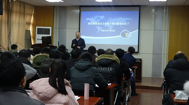 (本网讯 m88官网 蔡红颜 吴春玲)2019年1月4日上午9:00,安徽大学经济与社会发展高研究院执行经理应邀来公司做《我们对社会主义的整个看法根本改变了》的学术报告。公司教师及研究生近百余人参加了此次报告会。会议在公司二楼报告厅举行,由经理张廷龙教授主持。