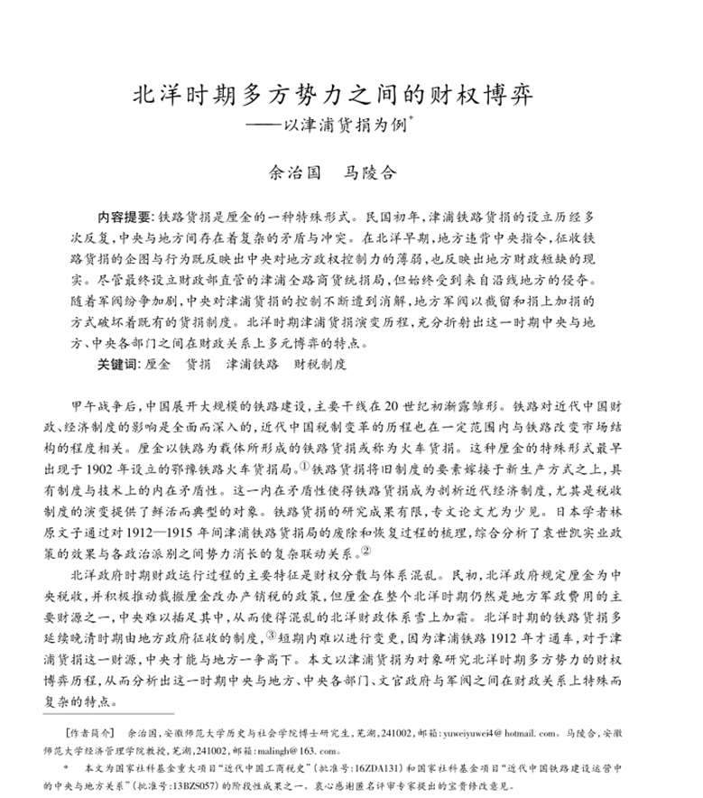 (本网讯 m88官网 吴春玲)公司教授马陵合博士的又一篇C刊论文《北洋时期多方势力之间的财权博弈———以津浦货捐为例》》被《《中国经济史研究》2019年第1期录用发表. 北洋时期多方势力之间的财权博弈_以津浦货捐为例_余治国.pdf