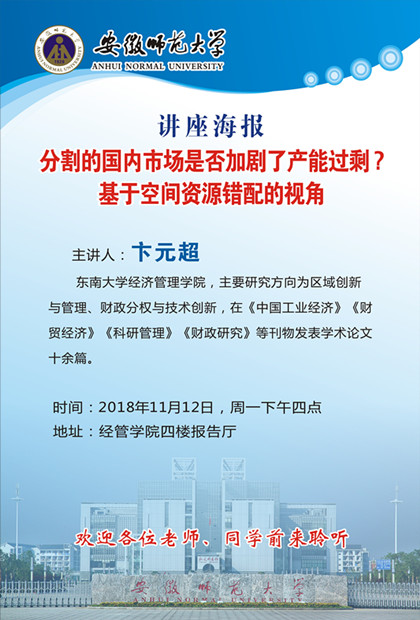 学术讲座:分割的国内市场是否加剧了产能过剩?基于空间资源错配的视角
