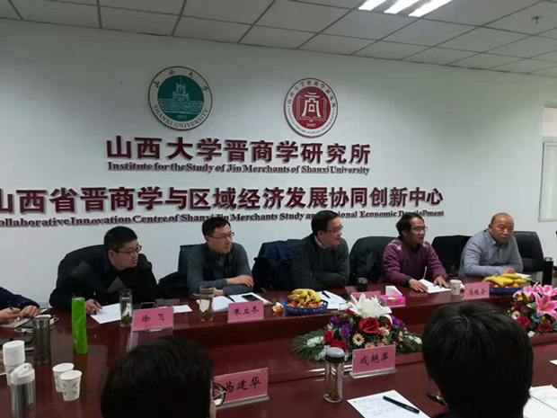 当天,公司教师和山西大学晋商所在家教师一起参加了交流座谈。座谈会由晋商所副所长刘成虎主持。晋商所刘建生教授介绍了该所的历史及研究状况。成艳萍、荣晓峰、刘文斌、马建华、吕长全、刘锦增等老师分别结合他们的研究内容,向我们介绍了晋商研究的学术研究情况;晋商所团队建设及组织管理情况;中国近现代商帮研究现况;晋商所的资料建设及社会调研情况;晋商所的社会服务情况;晋商经营管理研究、账册账簿研究经验。各位老师的介绍,为我们进行徽商研究提供了思路和很好的借鉴。