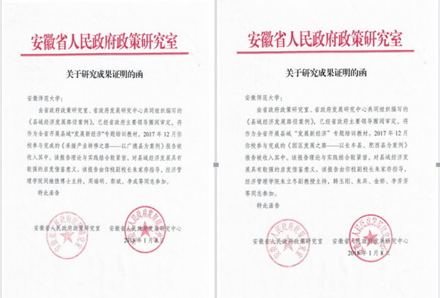 2017年,李国英省长对安徽省的代表性县(区)进行深入调研后,提出了安徽县域经济发展的“十条路径”。按照李国英省长指示要求,2017年11月,安徽省人民政府政策研究室、安徽省政府发展研究中心牵头,组织安徽大学、m88官方网站登录地址、安徽财经大学、安徽农业大学等安徽四所高等学府的十多位专家,负责安徽省县域经济发展“十条路径”的案例总结工作。省政府副秘书长叶晓明、省政府发展研究中心主任孙东海等领导全程参与指导,审慎选择案例,认真选拔撰写专家,积极组织深入细致地实地调研,多次组织案例撰写专题研讨会。