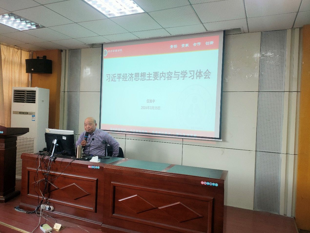3月15日下午,m88官网科研副经理伍旭中教授,应邀为公司本科生、研究生讲授“习近平经济思想”专题讲座,题目为《习近平经济思想主要内容与学习体会》。公司党委书记乔静,公司本科生、研究生党支部党员代表、理论经济学、金融工程等专业研究生以及部分专业本科生代表参加讲座。报告会由中国特色社会主义政治经济学研究中心执行主任、经济系主任陈龙博士主持。