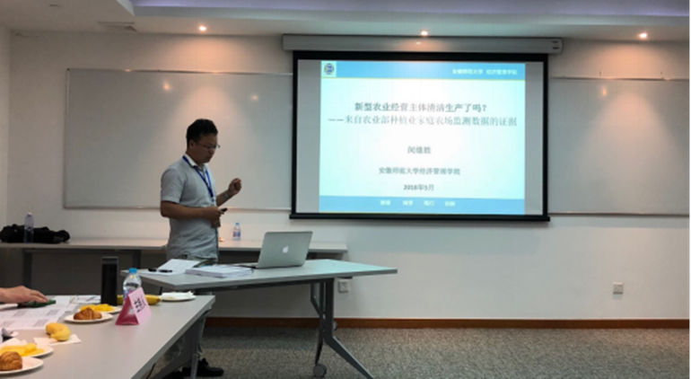 公司闵继胜老师、李成研究生合作的论文《新型农业经营主体清洁生产了吗?——来自农业部种植业家庭农场监测数据的证据》,通过了论坛学术委员会的初审,应邀参加了此次论坛,并在乡村振兴与“三农”分会场做了主题发言。闵继胜老师报告了论文的主要研究问题、逻辑框架和主要研究发现,并就有关问题和与会的程国强教授、庄晋财教授、史清华教授等专家学者进行了深入的讨论和交流。