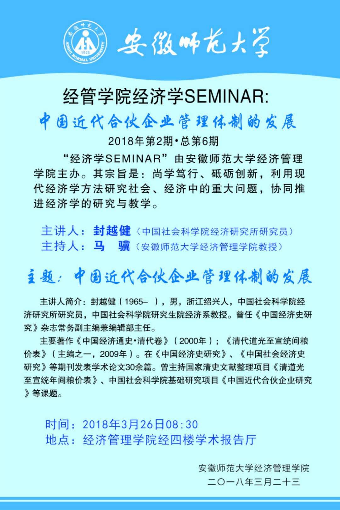 2018年3月26日,“m88官网经济学SEMINAR”(2018年第2期)在四楼学术报告厅召开。