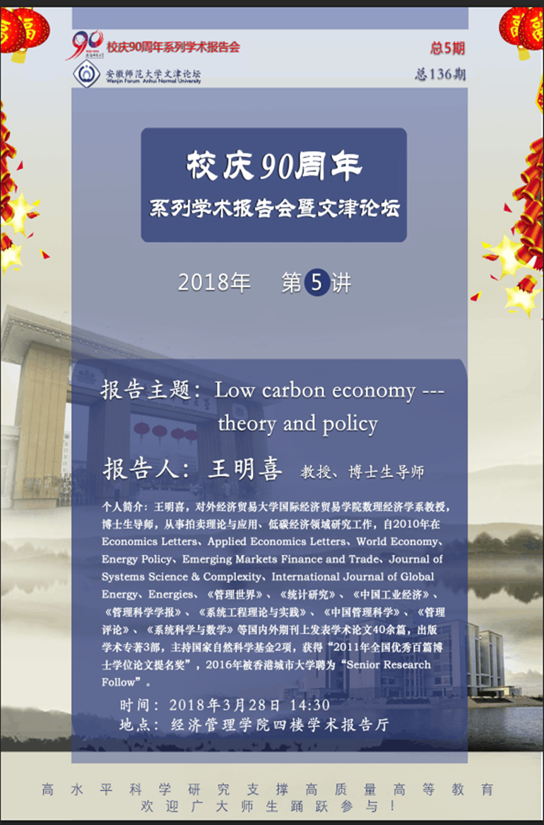 (本网讯 m88官网 孙银玉 吴春玲)2018年3月28日下午14:30,在公司四楼学术报告厅,对外经贸大学王明喜教授应邀为公司做“Low carbon economy theory and policy”的学术报告,公司相关教授和研究生近30余人参加了此次报告,此次报告由公司副经理马骥教授主持。