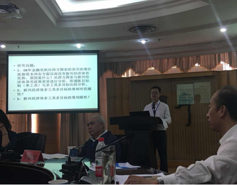 公司胡小文副教授应邀参加该次会议,并汇报了最新研究成果《货币政策规则、外汇干预与汇率稳定》。本文将资本管制、冲销干预纳入新凯恩斯DSGE模型,设定外汇干预管理汇率、利率调控通胀,构建具有微观机制的双目标双工具货币政策框架。模拟结果显示该框架能够解释我国外汇干预政策有效性。进一步模拟比较显示相对通胀目标制:(1)国外利率冲击下,双目标双工具政策能够在稳定汇率的同时有效隔离外部资本冲击,表现出更强的稳健性。(2)贸易条件恶化时,双目标双工具政策会阻碍汇率的必要调整,导致产出和通胀的波动较大。(3)社会福利损失显示,并非面对所有冲击双目标双工具货币政策福利损失都较低。综合来看,若央行将汇率稳定也作为政策目标,我国当前的外汇干预管理浮动汇率制政策最优。模拟还发现外汇干预固定汇率政策易导致外汇储备耗尽或持续积累;随着资本开放程度提高,外汇干预汇率能力将逐步下降。