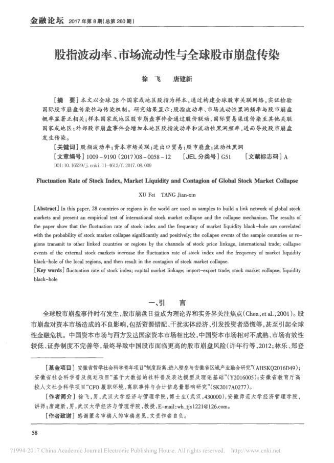(本网讯 m88官网 吴春玲 朱守梅)公司教师徐飞博士的论文《股指波动率、市场流动性与全球股市崩盘传染》被《金融论坛》录用发表,发表在2017年08期。 徐飞博士现就读于武汉大学经济与管理公司,已经在《经济理论与经济管理》、《体育科学》、《成都体育公司学报》、《统计与决策》、《科技管理研究》等核心期刊上连续发表多篇学术论文。 股指波动率_市场流动性与全球股市崩盘传染_徐飞_唐建新 (1).pdf