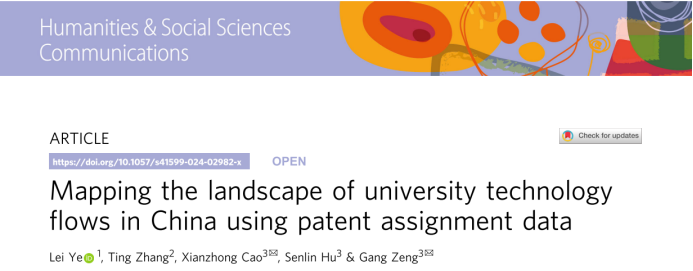 论文信息:Ye, L., Zhang, T., Cao, X. et al. Mapping the landscape of university technology flows in China using patent assignment data. Humanit Soc Sci Commun 11, 473 (2024). https://doi.org/10.1057/s41599-024-02982-x.