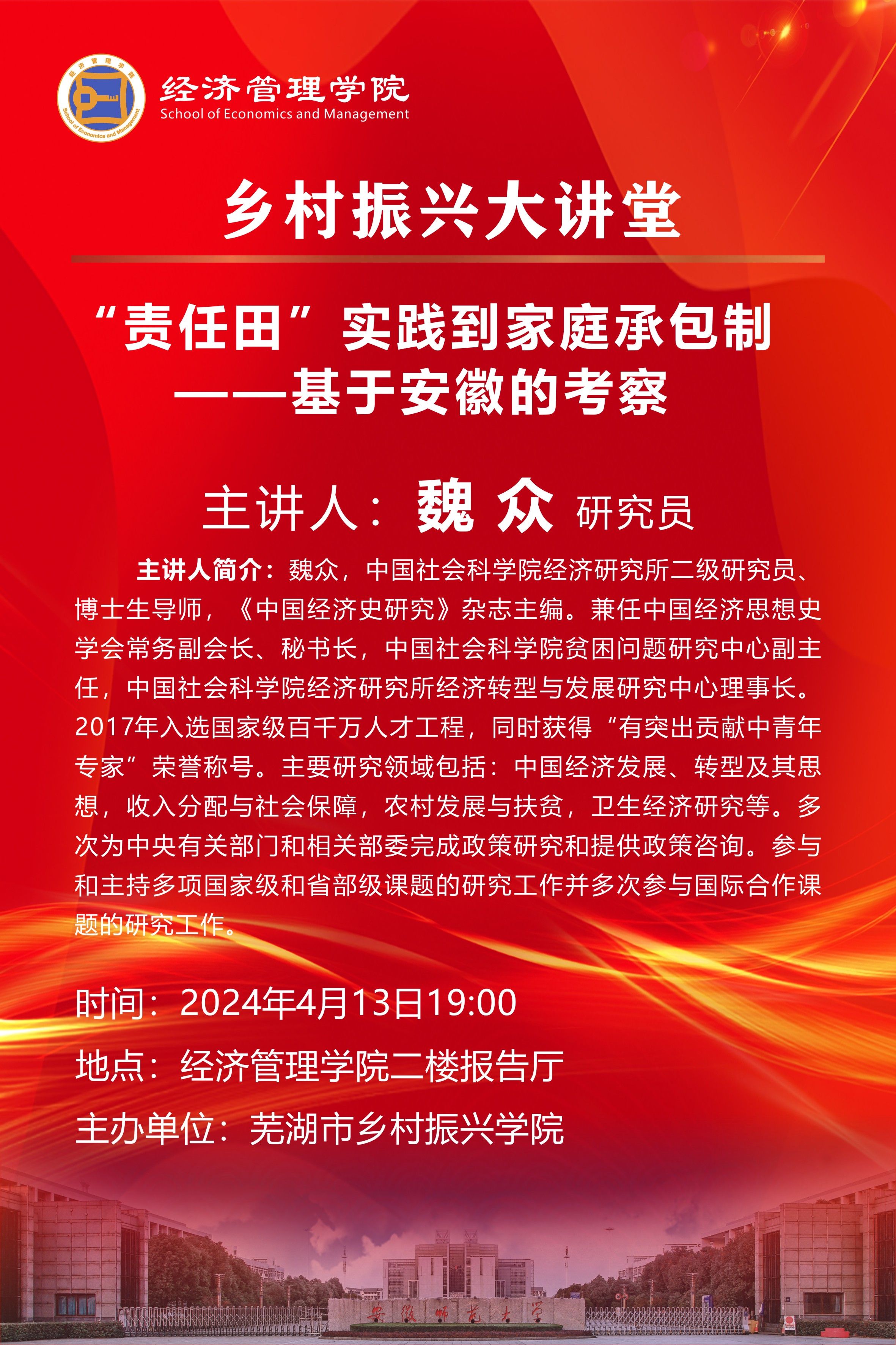 【学术讲座预告】魏众:“责任田”实践到家庭承包制——基于安徽的考察