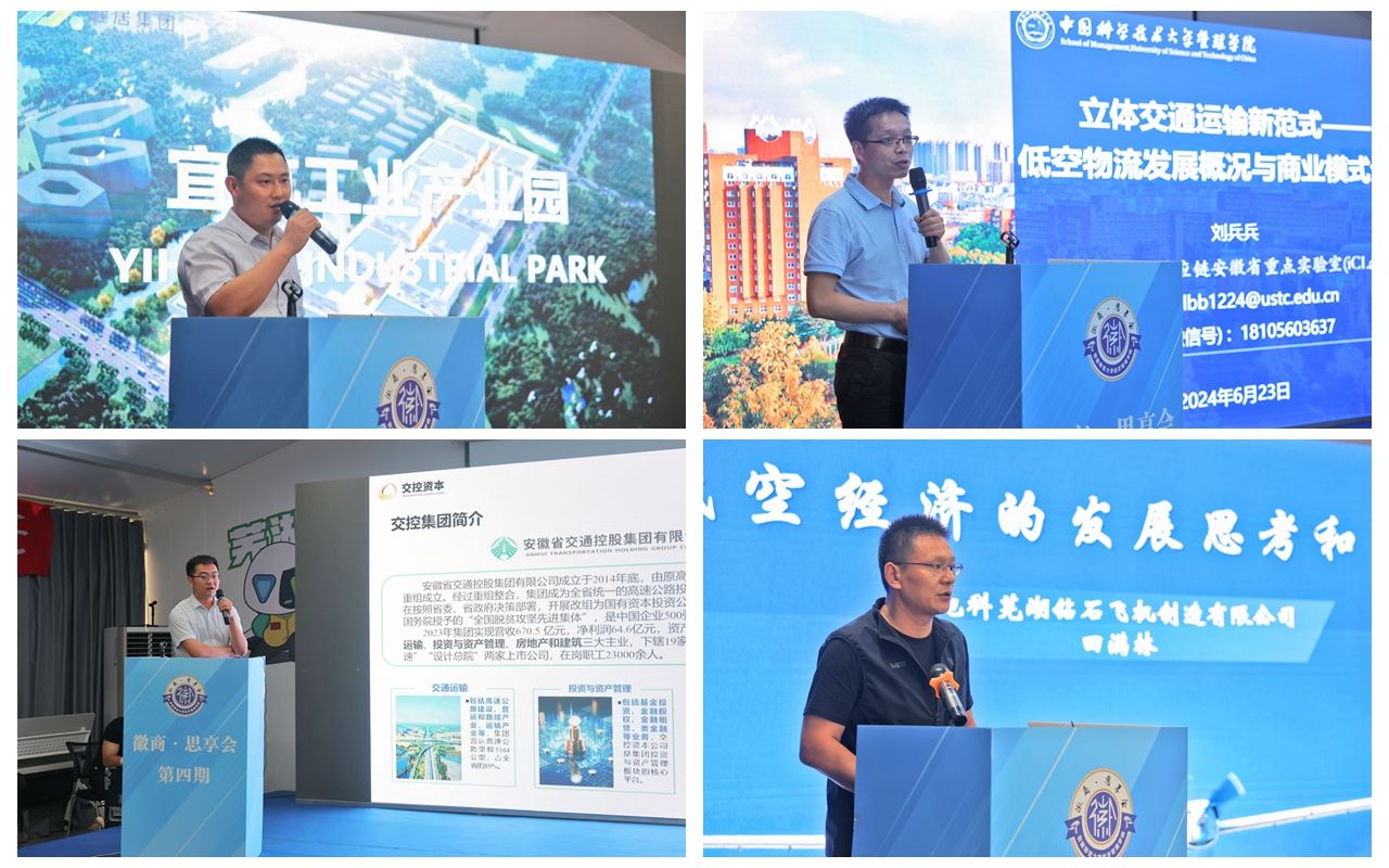 主旨报告阶段,8位业界专家、学者围绕低空经济作了精彩分享。分别是中电科钻石飞机有限公司总经理田满林《低空经济的发展思考与实践》,芜湖通航产业技术研究院徐从旺总经理《低空空域改革之我见》,航空产业知识产权运营中心(安徽)有限公司高级分析师赵瑞《知识产权赋能低空经济高质量发展》,上海恒道国际物流股份有限公司张广涛总监《万亿新蓝海孕育无限商机——低空经济为物流供应链高质量迭代创造新机遇》,芜湖宜居投资集团战略发展部部长孙亮《芜湖宜航工业产业园》,中国科学技术大学现代物流工程研究中心刘兵兵主任《立体交通运输新范式—低空物流发展概况与商业模式分析》,安徽交控资本投资管理有限公司副总经理王亮《发挥国有资本作用,助力低空产业发展》,m88官网MBA教育中心副主任杨康《低空物流实践与研究前沿》。