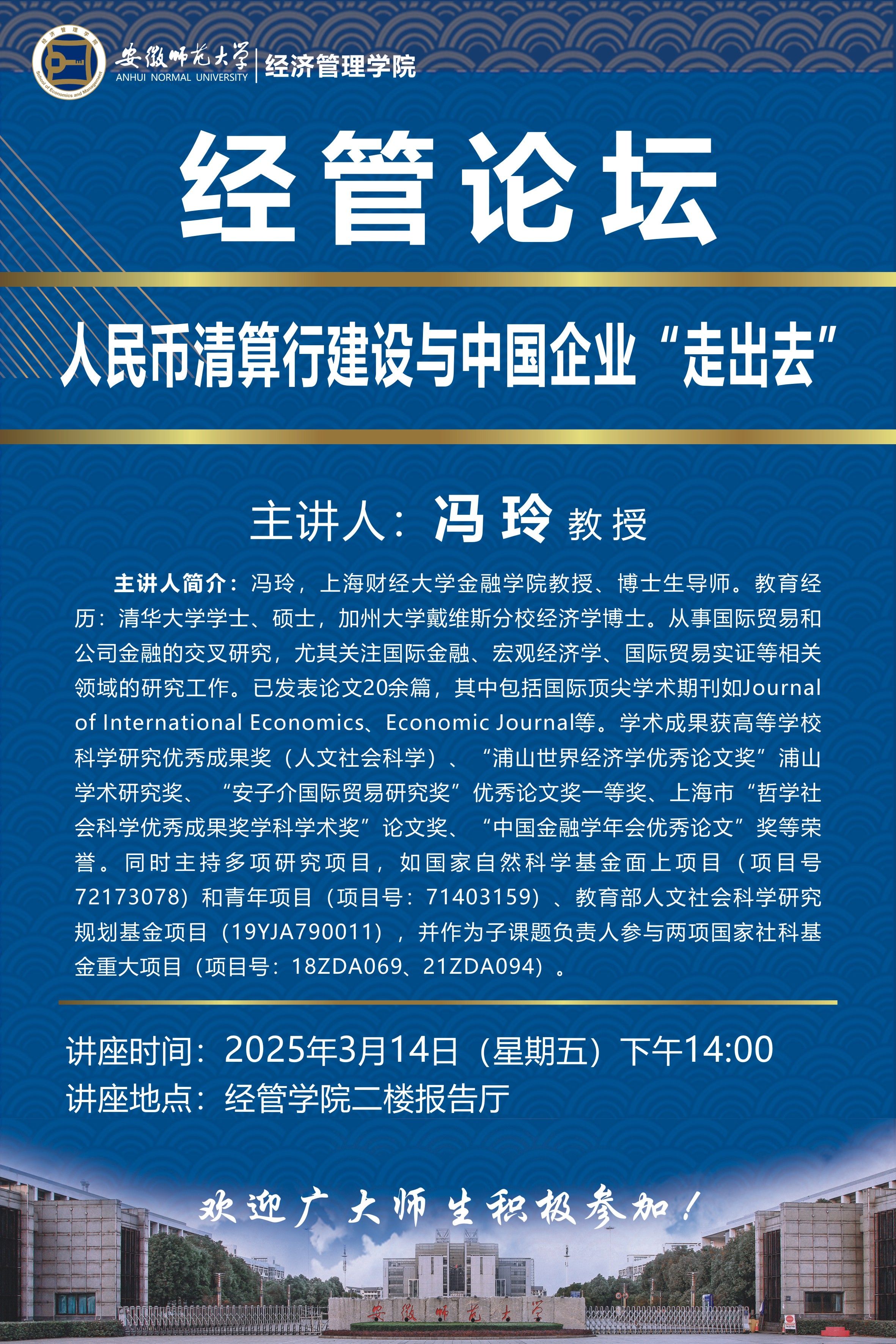 【专家讲座预告】冯玲:人民币清算行建设与中国企业“走出去”