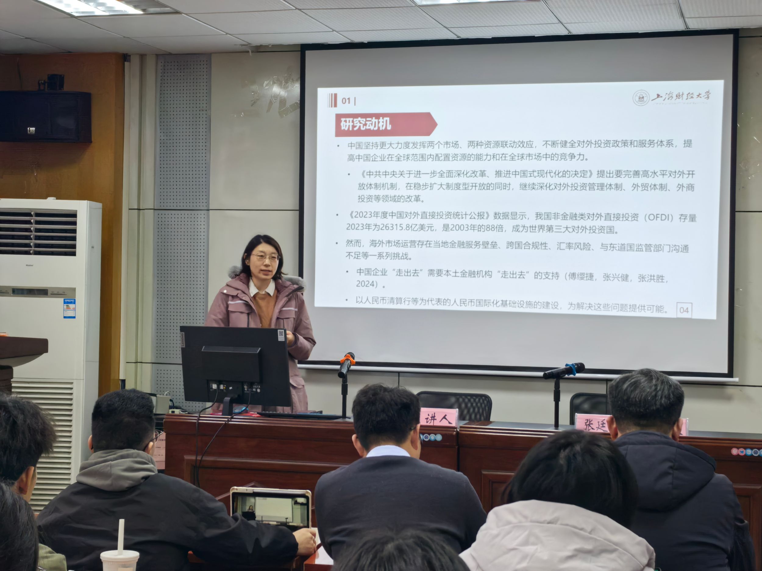 2025年3月14日下午,公司邀请上海财经大学金融公司教授、博士生导师冯玲教授作主题为“人民币清算行建设与中国企业‘走出去’”的专题讲座,公司金融专业教师及研究生约60人聆听讲座,讲座由经理张廷龙教授主持。