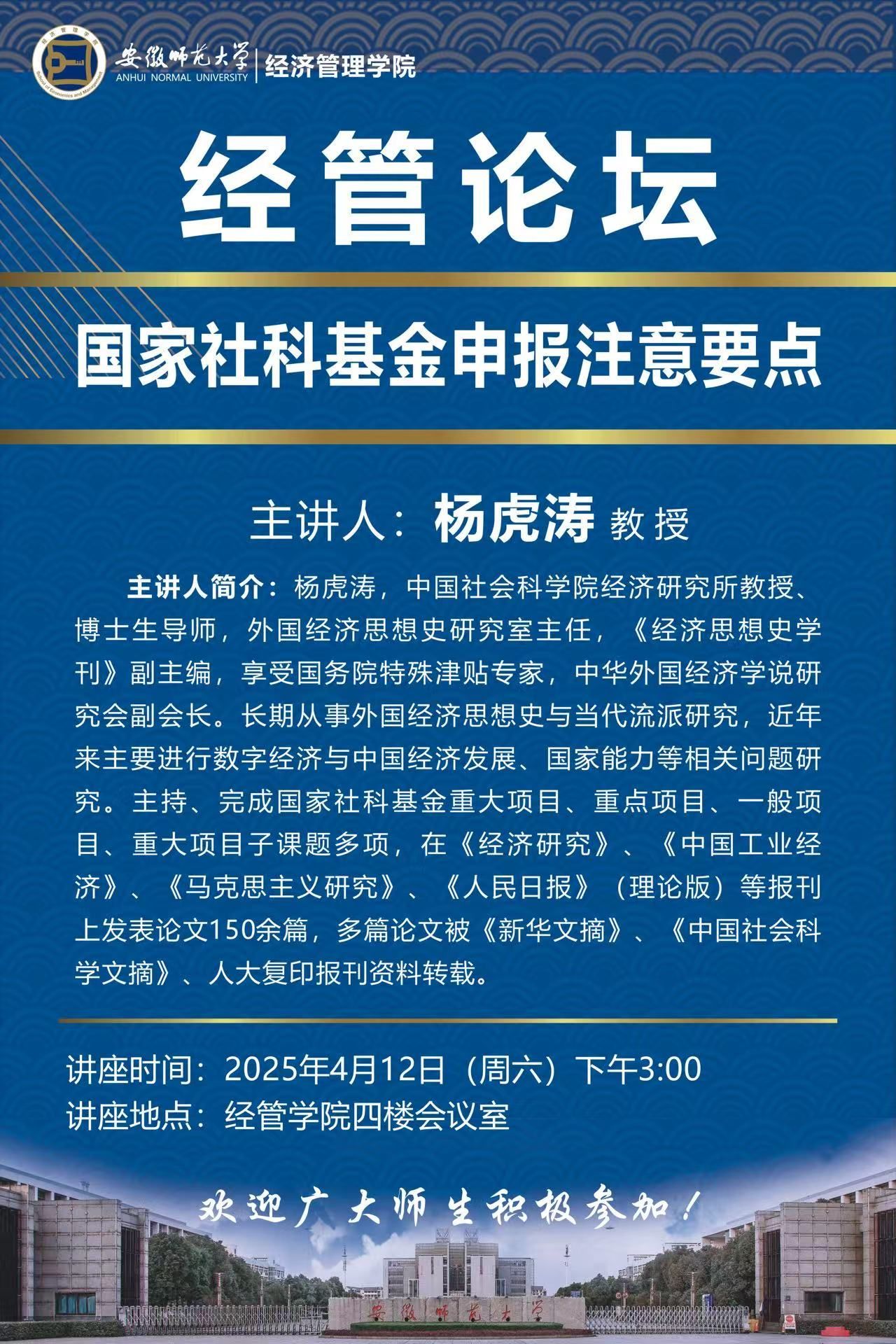 【学术讲座预告】杨虎涛:国家社科基金申报注意要点