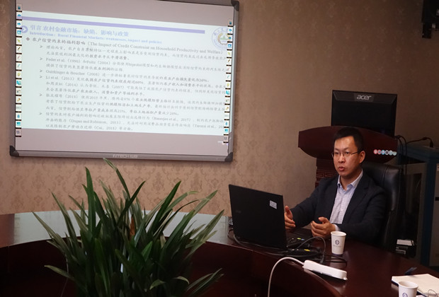 张龙耀以农村金融市场的大背景下,解释了发展中国家农村金融市场存在系统性缺陷的原因。重点关注农村金融市场失灵,导致发展中国家农村金融市场效率低下,农户面临较为严重的信贷约束,并且对如何缓解农户面临的信贷问题和提高农村金融市场效率提出了自己的见解。进而引出中国小额信贷的普惠逻辑以及相关的理论与实证的分析。通过研究的背景和问题的提出,来进一步关注小额信贷推动金融普惠的逻辑。他以中和农信小额信贷为研究对象,运用一系列的数据研究和计量模型方法的运用,来刨析中国小额信贷的发展历史和现状。并进一步讨论人均收入、人均资产来说明小额信贷帮助农民优化了其在正规市场的表现,解释作用机制检验中信用记录获得、财富水平相关的内容。最后就中国农村数字金融的理论和展望作出了相应的总结。报告结束后,张龙耀与参会教师就所讲内容,方法和后续研究方向进行了互动交流。