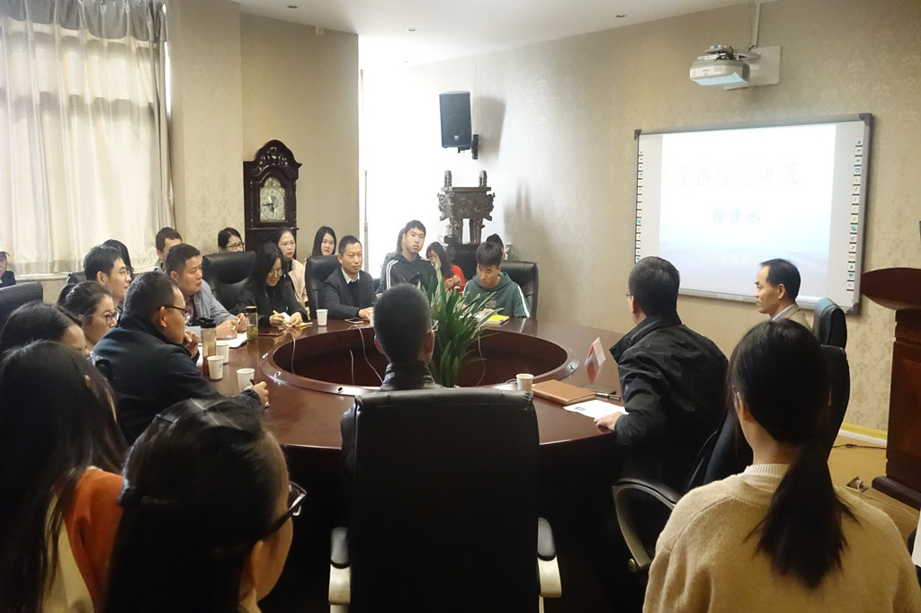本网讯(虞同林 吴春玲)11月13日上午,四川大学商公司,博士生导师徐泽水教授应邀在公司四楼报告厅作了题为“复杂信息决策”的学术报告。公司部分相关教师和研究生参加了此次报告会,报告会议由经理张廷龙教授主持。