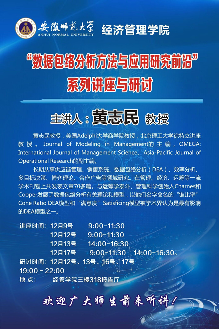 学术讲座预告:“数据包络分析方法与应用研究前沿”系列讲座与研讨