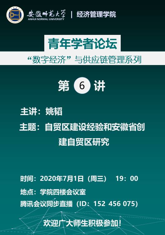 青年学者论坛-“数字经济”与供应链管理第6讲:自贸区建设经验和安徽省创建自贸区研究