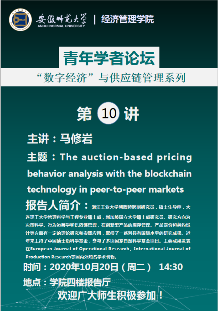 学术讲座预告:The auction-based pricing behavior analysis with the blockchain technology in peer-to-peer markets