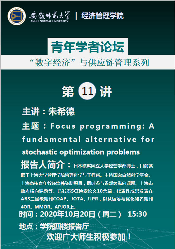 学术讲座预告:Focus programming: A fundamental alternative for stochastic optimization problems