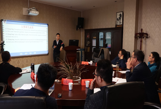 其次,方昶博士就正在主持的2018年度国家自然青年基金《竞争环境下考虑顾客感知价值的制造/再制造企业产量与定价优化决策研究》和2018年度安徽省自然基金《制造/再制造系统生产计划协同优化问题研究》两个课题分别从项目主要研究内容、项目研究进展、主要研究成果、研究成果与研究内容关联性、以及下一步的计划和存在的问题等面进行了细致的PPT汇报。