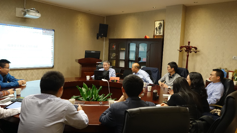 郑红亮教授作了题为“经济学学术论文写作漫谈——技术性分析和思想性发现如何更好地统一”的学术汇报。郑红亮教授首先从经济体制改革、增长与发展、财税体制、金融体制等方面列举了经济学应该关注的重大理论和现实问题,好的选题应该重大、重要、有新意,理论性、思想性要强。其次,从列出研究和写作提纲、引言部分、文献综述、理论分析模型和重要假设提出、计量模型和经验实证、结论和政策含义等方面详细阐述了经济学论文技术性分析和思想性发现是如何实现更好地统一的。最后,他就经济学论文写作注意事项这一问题展开详细论述,并指出经济学论文写作需要有新的角度、新的数据、新的方法、新的观点、新的结论等方面的创新。