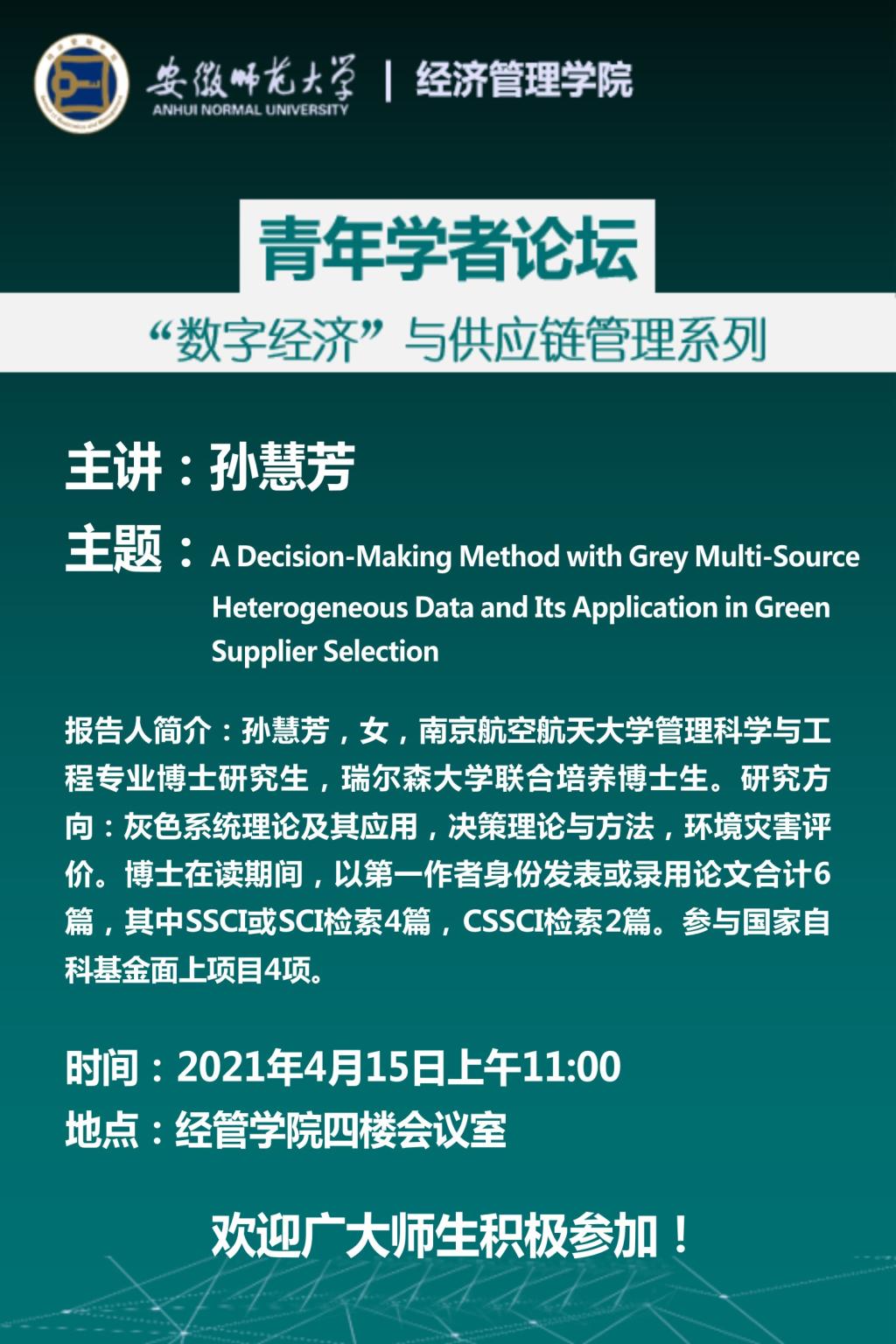 青年学者论坛——A Decision-Making Method with Grey Multi-Source Heterogeneous Data and Its Application in Green Supplier Selection