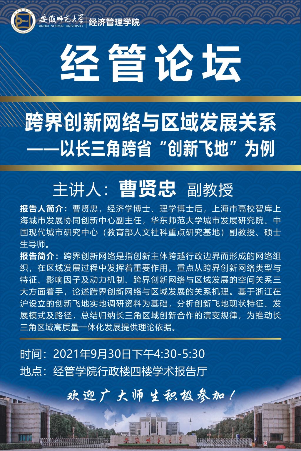 学术讲座预告:跨界创新网络与区域发展关系——以长三角跨省“创新飞地”为例
