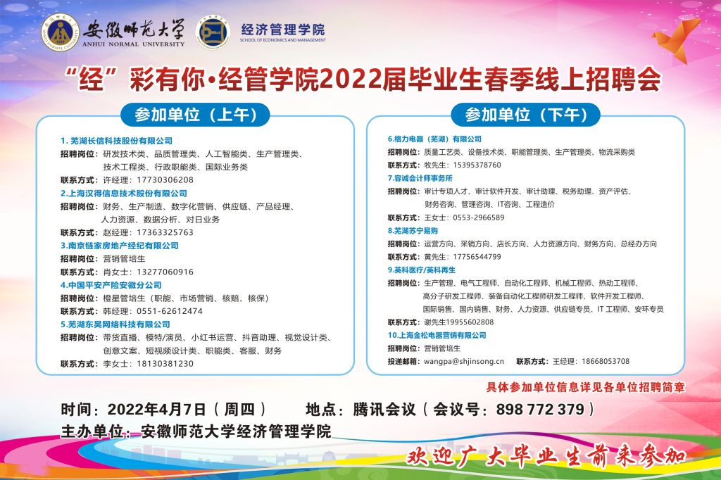 【职业发展中心】m88官网2022届毕业生春季线上招聘会(4月7号)