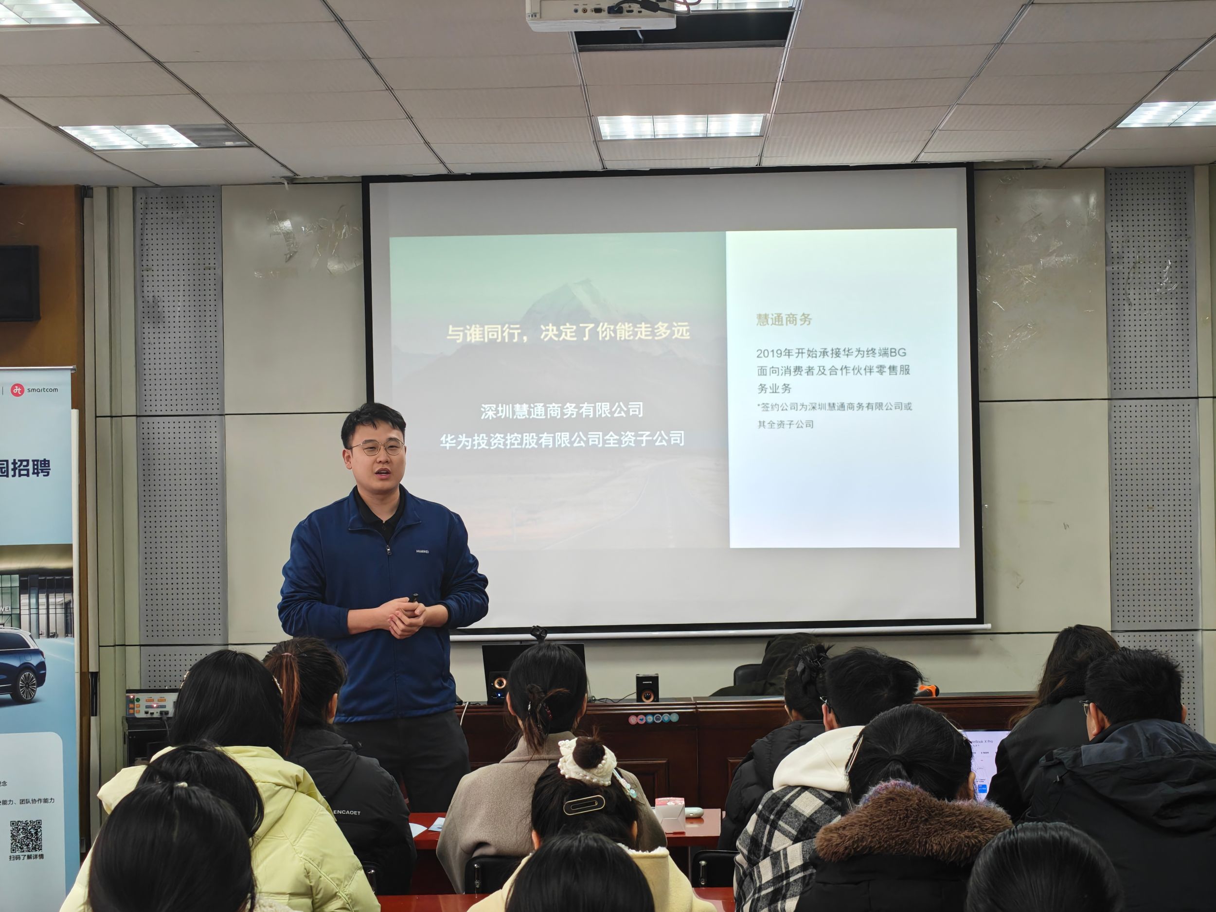 3月5日下午,深圳慧通商务有限公司在m88官网二楼报告厅开展招聘宣讲,2025届40余名毕业生参加。