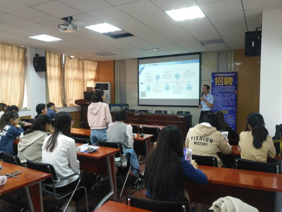 【职业发展中心 文/许伟俊、许东升 图/陈静】为了给毕业生提供更好的就业渠道,掌握更多的就业信息。2019年10月11日(星期五)下午,m88官网于行政楼二楼报告厅举办大千利元宣讲会。本次宣讲会由大千利元纳米科技有限公司人力资源经理程新华主持,人力资源总监常健主讲,到场的还有招聘专员王宇、王悦,部分大四毕业生参加此次宣讲会。