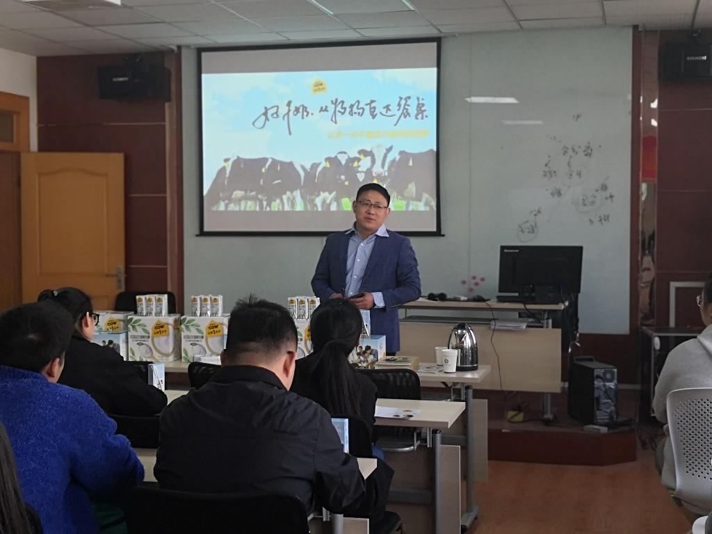 会前,招聘主管汪凤珍播放的两段有关认养一头牛集团创业历程、优质牧场介绍的视频让同学们对集团有了初步了解。会议伊始,杨总监从品牌源起、品牌合伙人、品牌历程、跨界合作、新零售新场景、集团所获荣誉和其战略部署七个方面向毕业生们介绍认养一头牛集团的概况,其中杨总监提到集团拥有优质而广阔的牧场,自动一体化的挤奶流程更是提高了牛奶的生产效率,也正是这样才生产出了高品质、高颜值和高性价比的牛奶产品。此外,随着网络时代的发展,集团也紧跟时代浪潮,线上交易额达八亿,并在2019年成为天猫乳制品TOP1。精品电商、传统电商和社交电商并驾齐驱,也为集团的发展增添活力,更有流量赋能以及多业态融合、多场景覆盖的零售新场景、多种态势发展让该集团更具前景和发展空间。