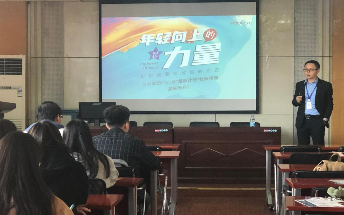 首先,张经理向同学们分析了疫情时期的就业情况,并据此强调了校园招聘的重要性。会上,张经理从公司的发展历程、集团荣誉、集团战略和组织架构等方面帮助员工认识并了解了万兴集团。接着借集团开发的项目展现了公司的发展前景,并以图片的形式、结合自身经历让员工感受到了万兴优秀的企业文化。随后,张经理介绍了万兴团队的主要成员,以他们的工作经历鼓励在场的毕业生加入万兴。同时重点强调了公司为培养人才提出的“星辰计划”,对薪酬福利和培养方案作了具体的说明,进一步展示了企业为人才提供的职业发展空间。宣讲会结束后,在场的员工纷纷表示收获颇丰。部分毕业生向企业投递了简历,并与几位人事经理就岗位职责和要求进行了深入的交流和现场面试。