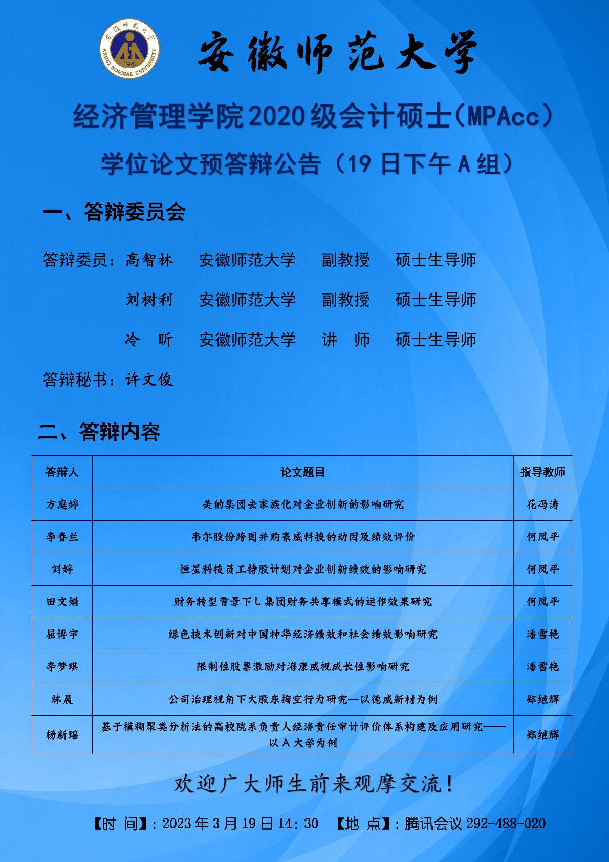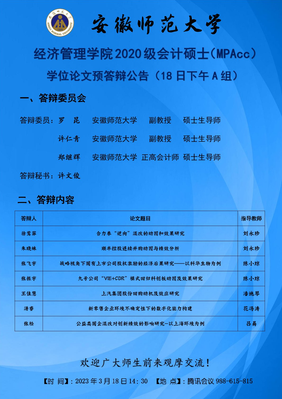 m88官网2023届会计专业硕士学位论文预答辩公告