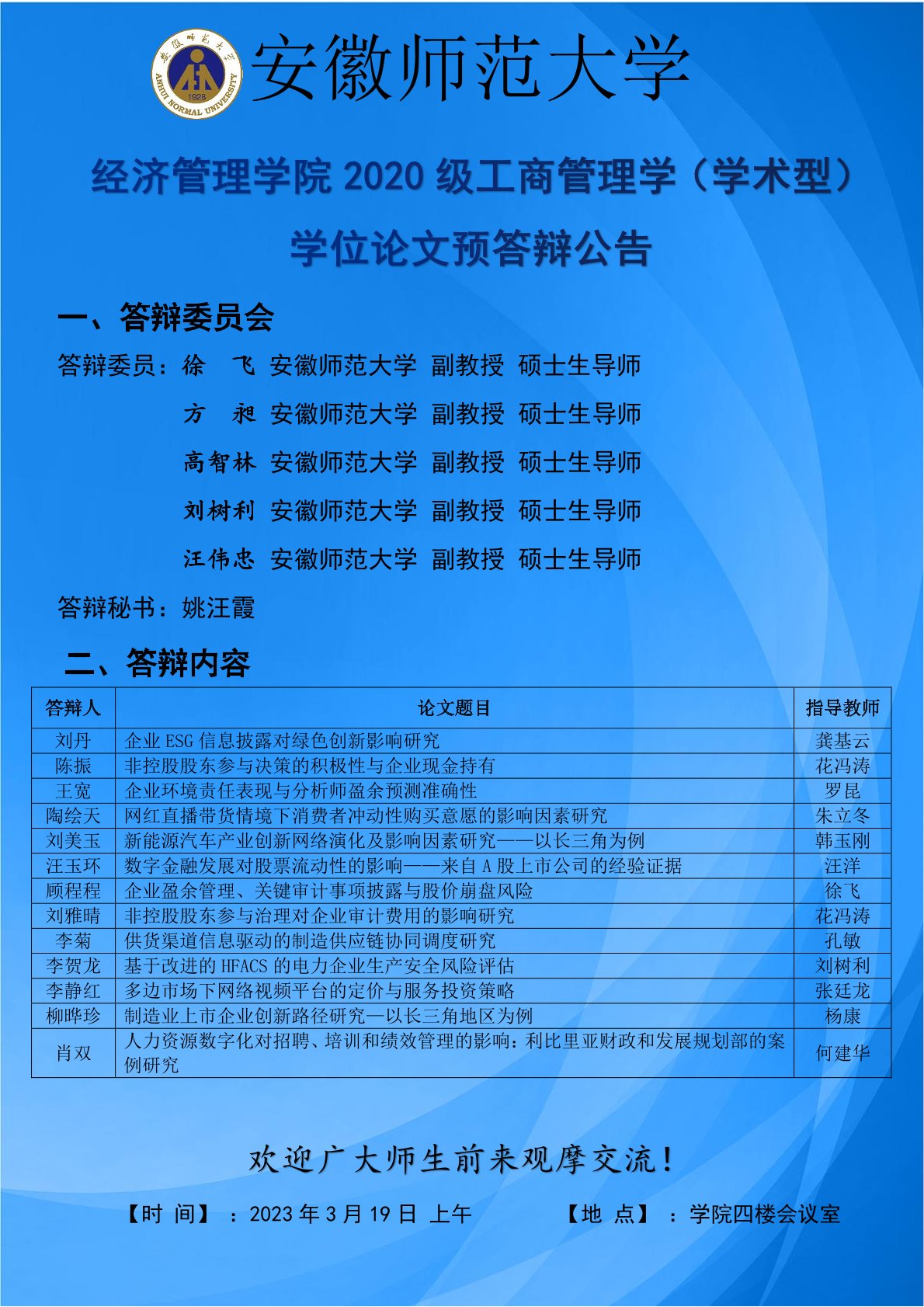 m88官网2023届工商管理学(学术型)学位论文预答辩公告