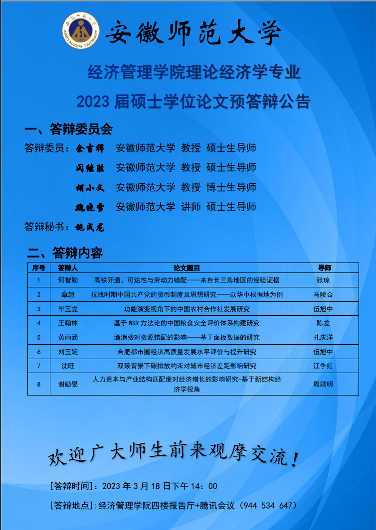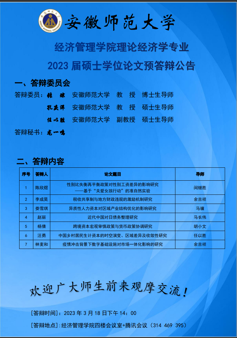 m88官网2023届理论经济学硕士学位论文预答辩公告