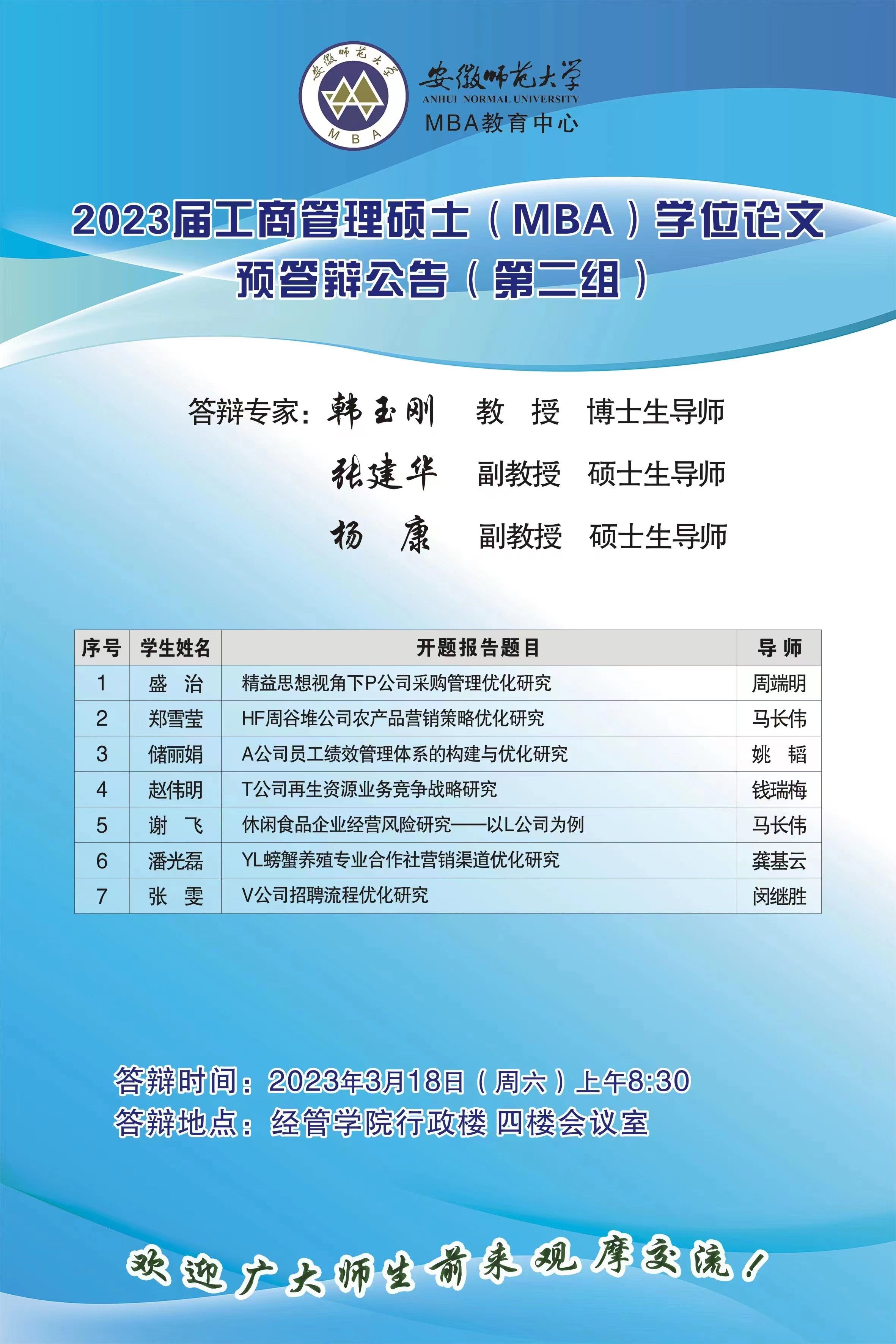 m88官网2023届工商管理(MBA)专业硕士学位论文预答辩公告