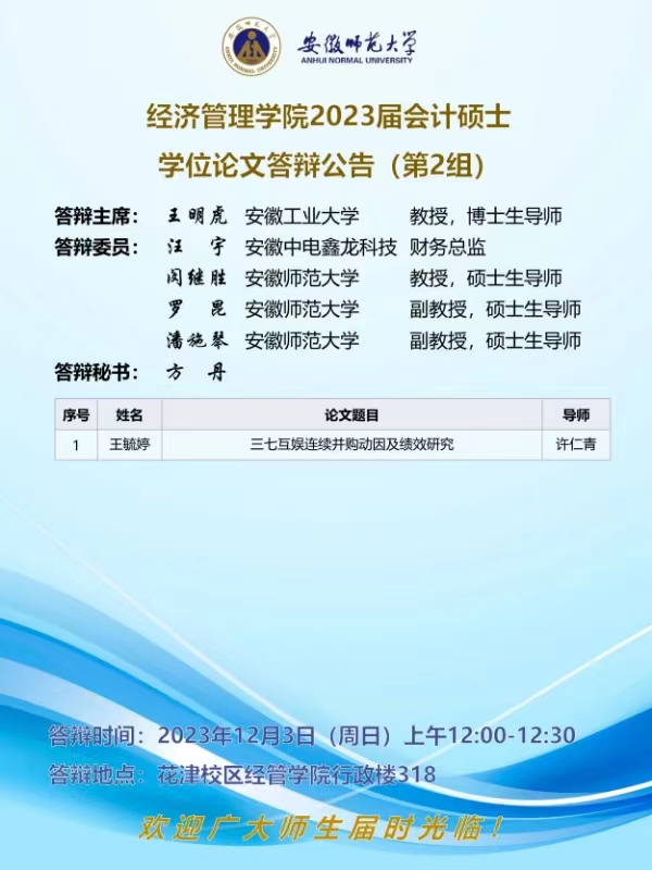 m88官网2023届会计专业硕士研究生学位论文答辩公告(下半年)