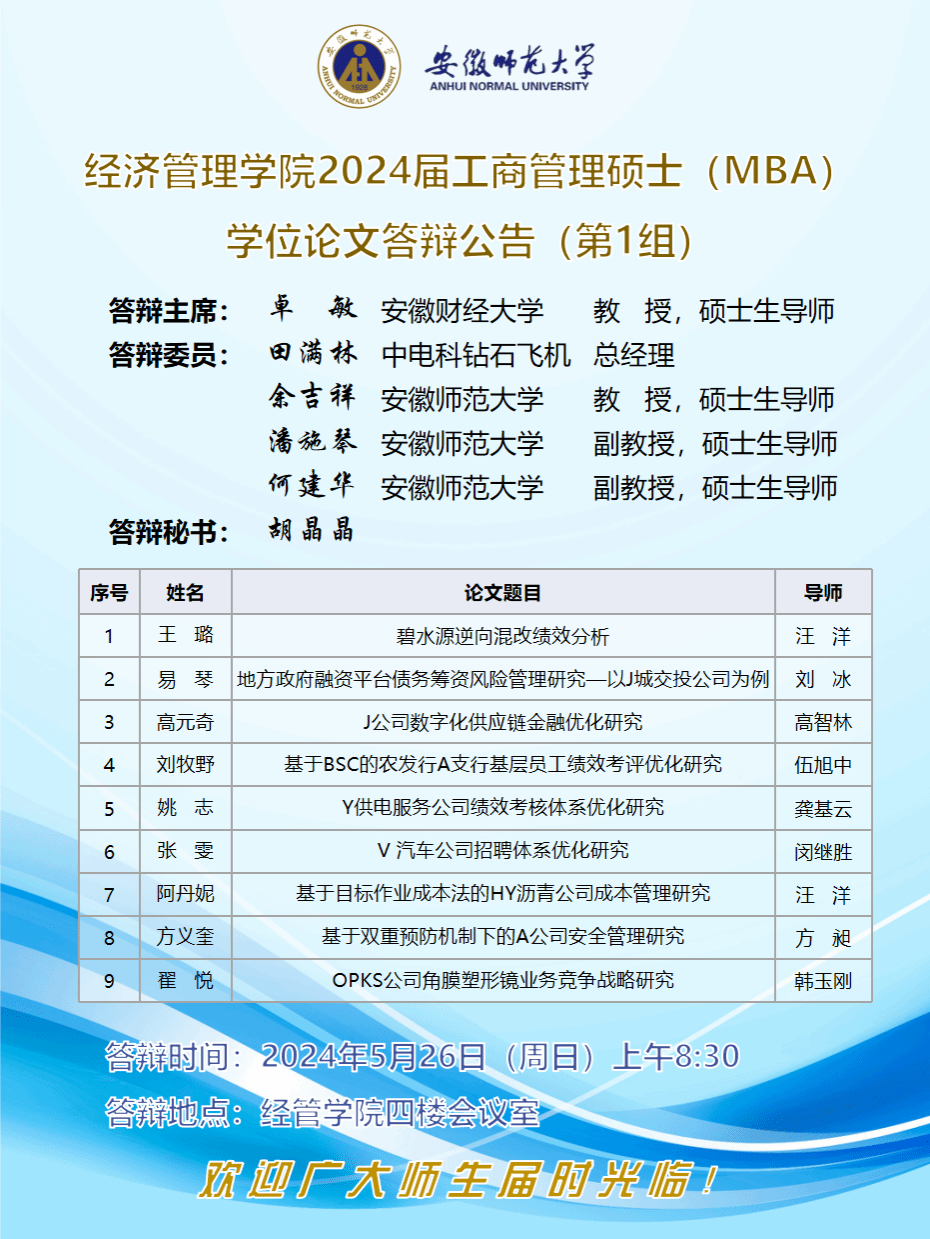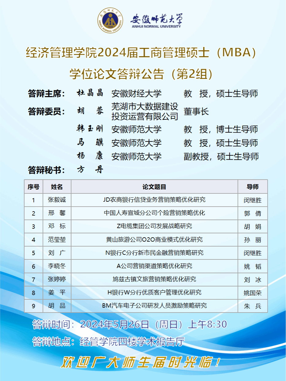 m88官网2024届工商管理硕士(MBA)学位论文答辩公告
