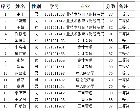 10月15日,理论经济学、工商管理、教育(财经商贸)和会计专硕四个专业的2018级研究生新生进行了研究生新生入学专业课综合考试。在此次考试中,高阳等15名同学成绩优异,经公司党政联席会议研究决定予以表彰奖励。希望受表彰的同学再接再厉,在以后的学习中取得更好的成绩。
