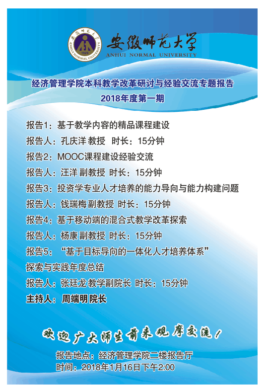 m88官网本科教学改革研讨与经验交流专题报告2018年度第一期