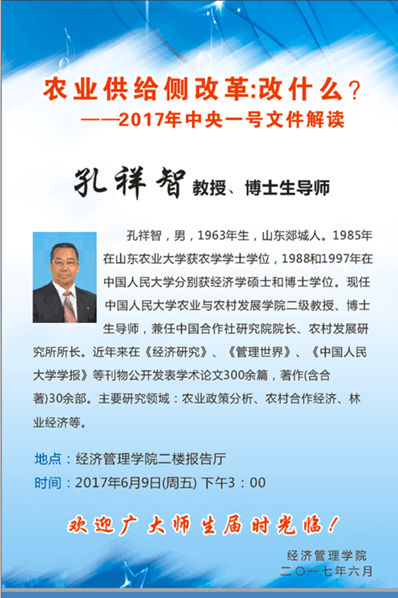 学术报告通知:农业供给侧改革:改什么?—2017年中央一号文件解读