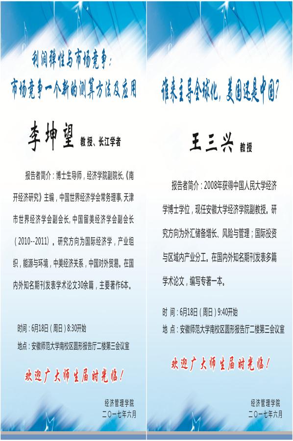 m88官网“徽派经济论坛”系列讲座(1704期)